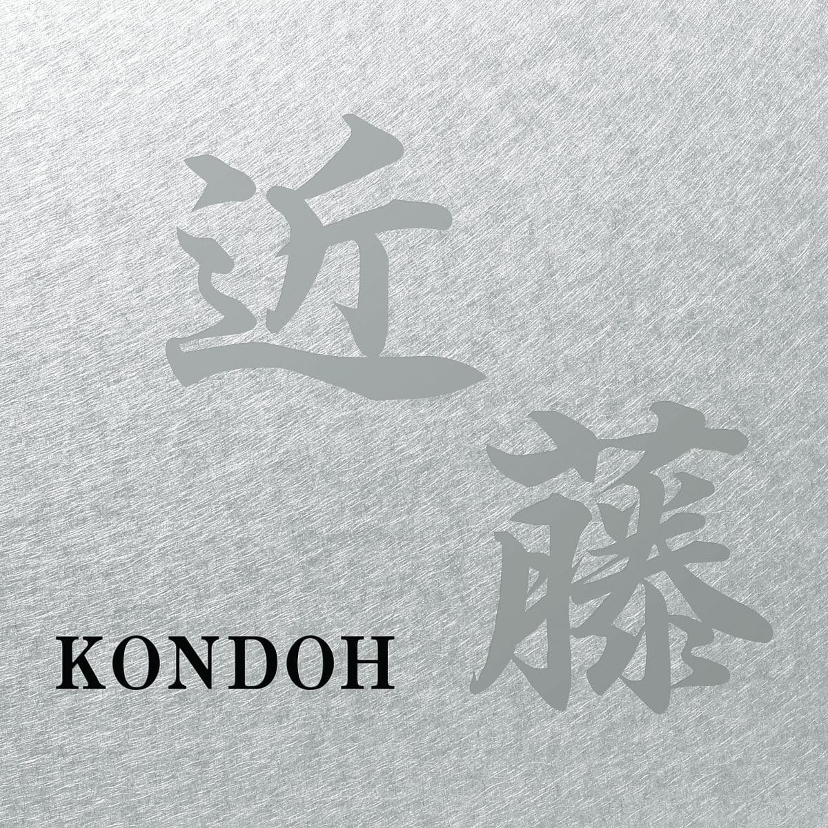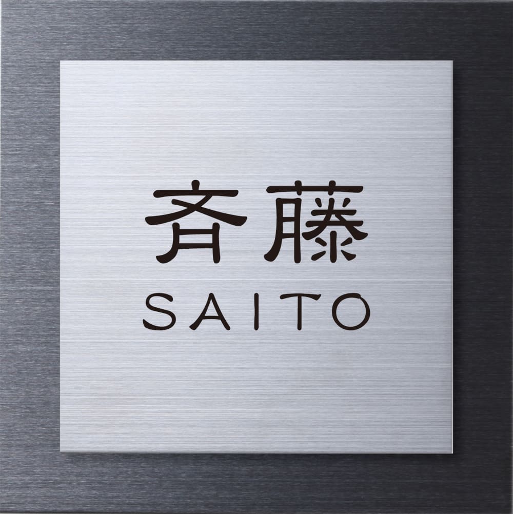 様々な表情のステンレスのベースプレートにステンレスヘアラインの表札を重ね合わせました。