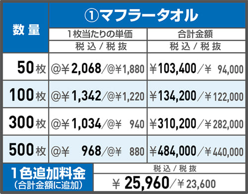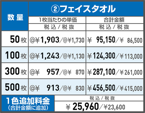 ※タオル本体色と印刷色の組み合わせにより印刷色がブレる場合がございます。