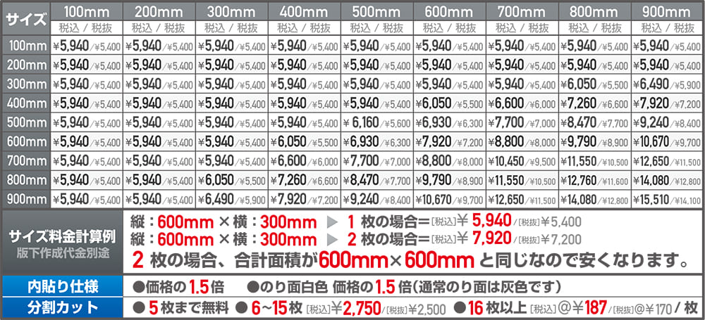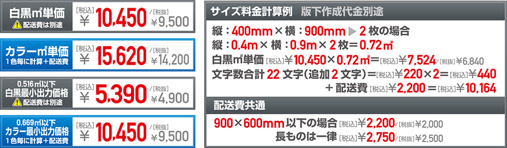 版下作成代金 税込5,500円~。配送費別途